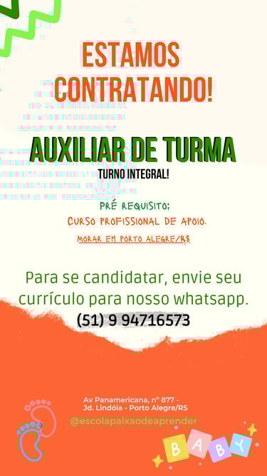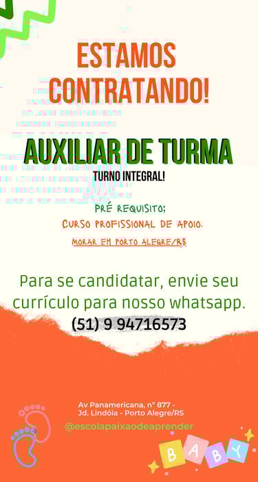 Encontre as oportunidades de trabalho da nossa escola e envie seu currículo diretamente pelo WhatsApp.